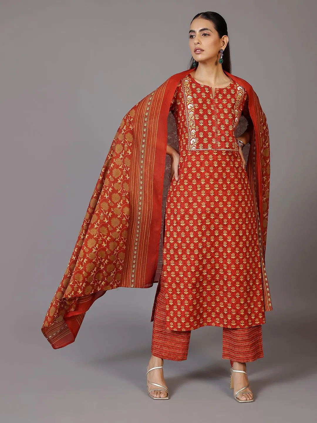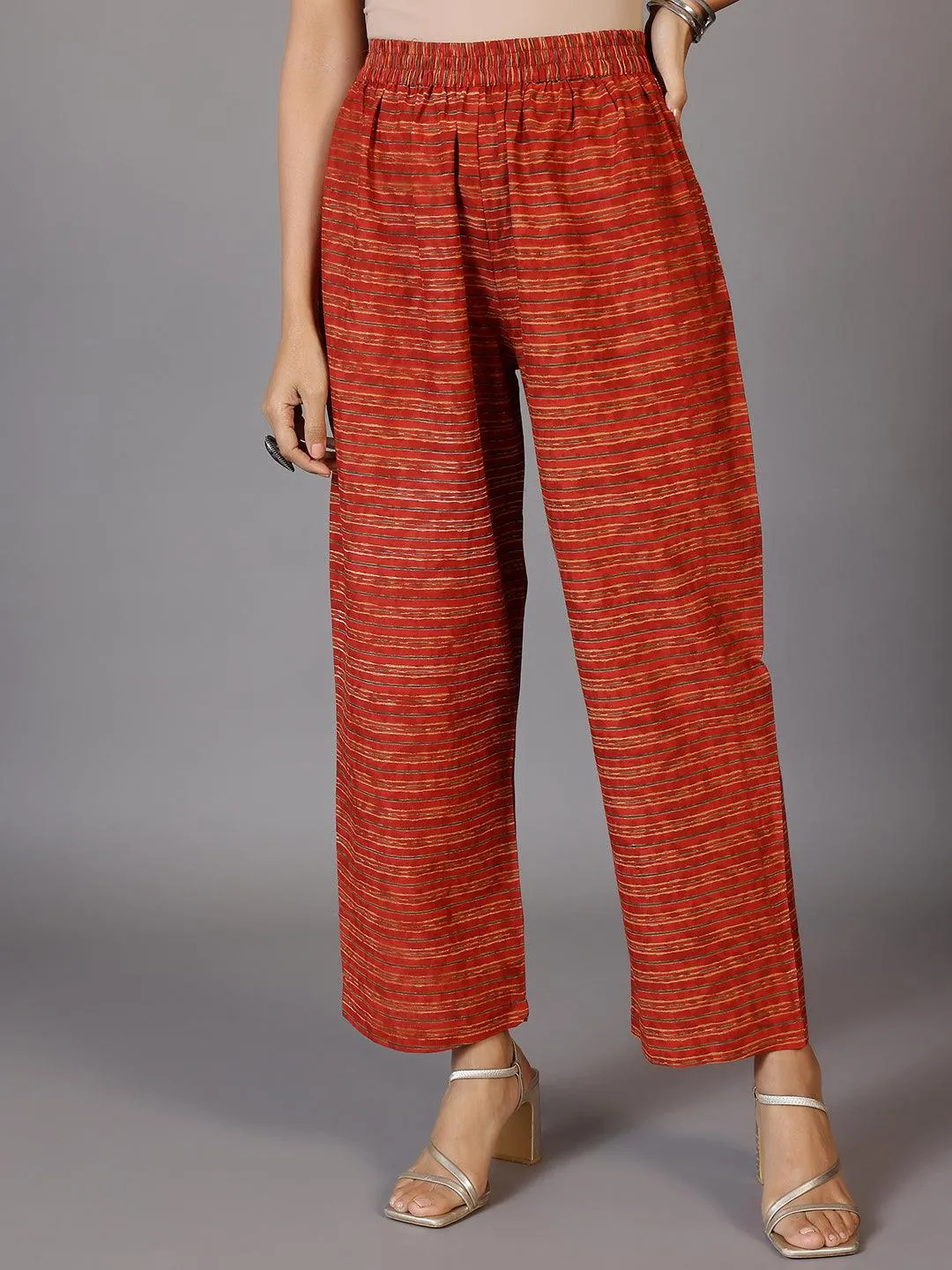 Typically comes with either straight pants, palazzos, churidar, or a salwar — usually in a matching or complementary color.